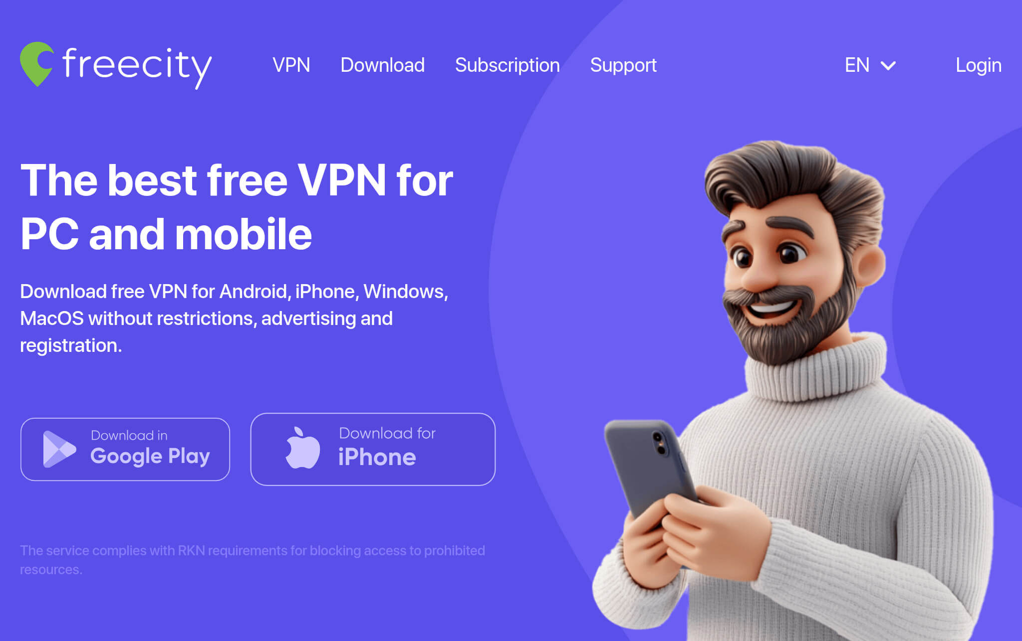 1. Перейдите на сайта https://aa.freecityvpn.com/ и выберите “Вход”: