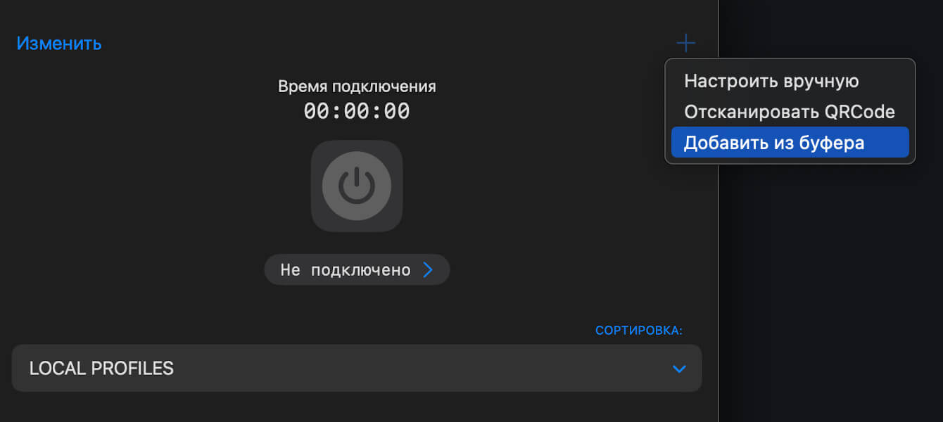 6. Откройте приложение Streisand и нажмите на знак “+” в правом верхнем углу. Убедитесь, что Вы скопировали ключ с сайта https://aa.freecityvpn.com/ и затем нажмите “Добавить из буфера”: