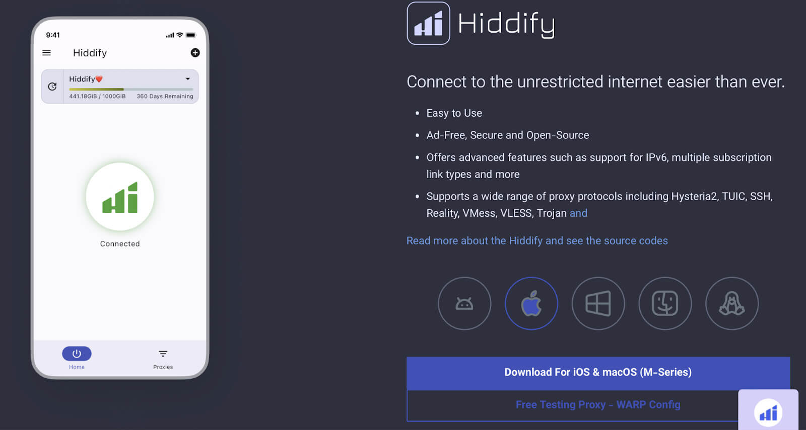 5. Скачайте приложение Hiddify с сайта https://hiddify.com или по ссылке с github https://github.com/hiddify/hiddify-app